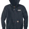 Carhartt label sewn on left hand warmer pocket